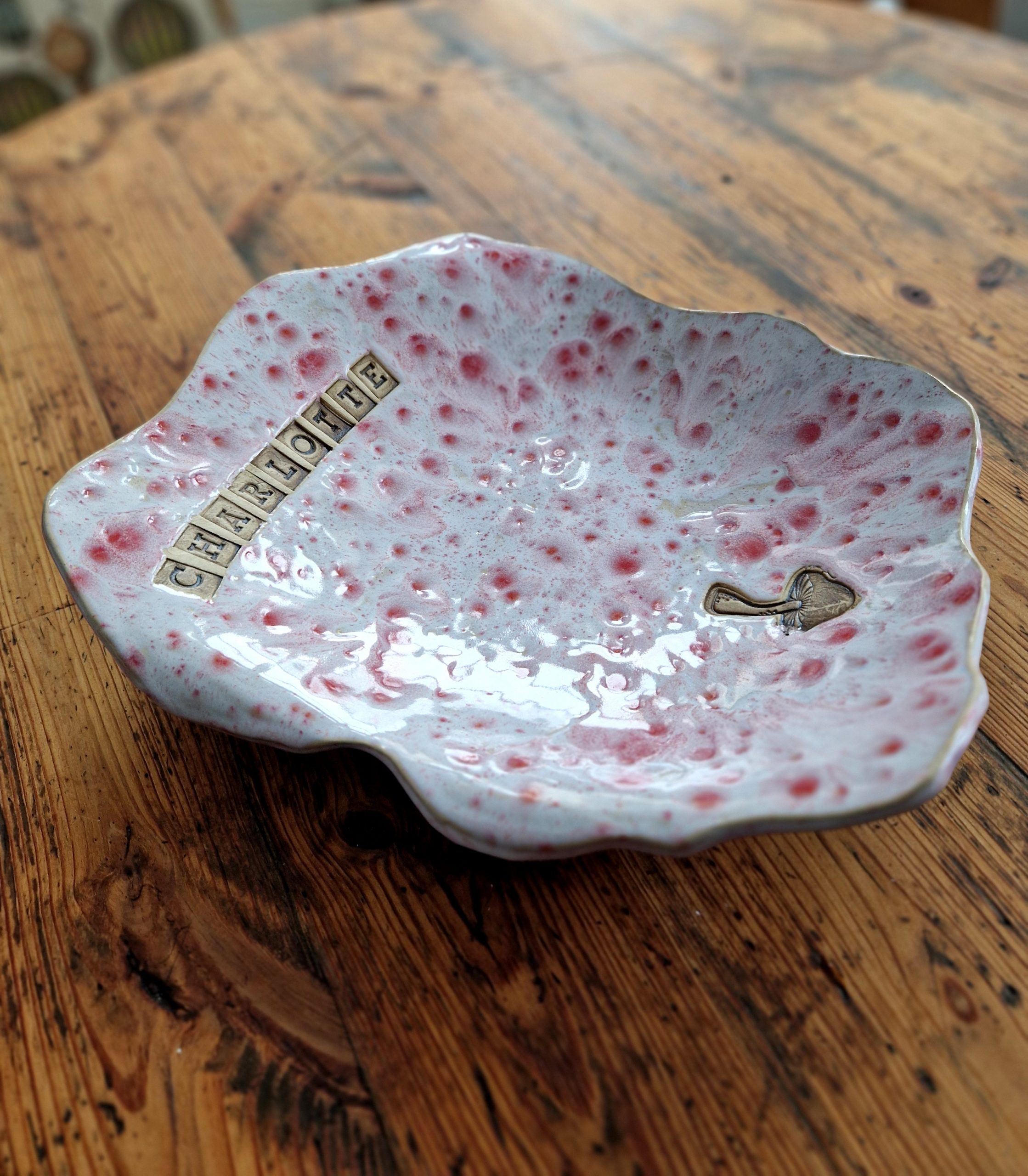 Nach einer Trocknungszeit von ca. 1,5 – 2 Wochen brenne ich die Schale im Schrühbrand, glasiere sie in deiner Wunschfarbe und brenne sie erneut.